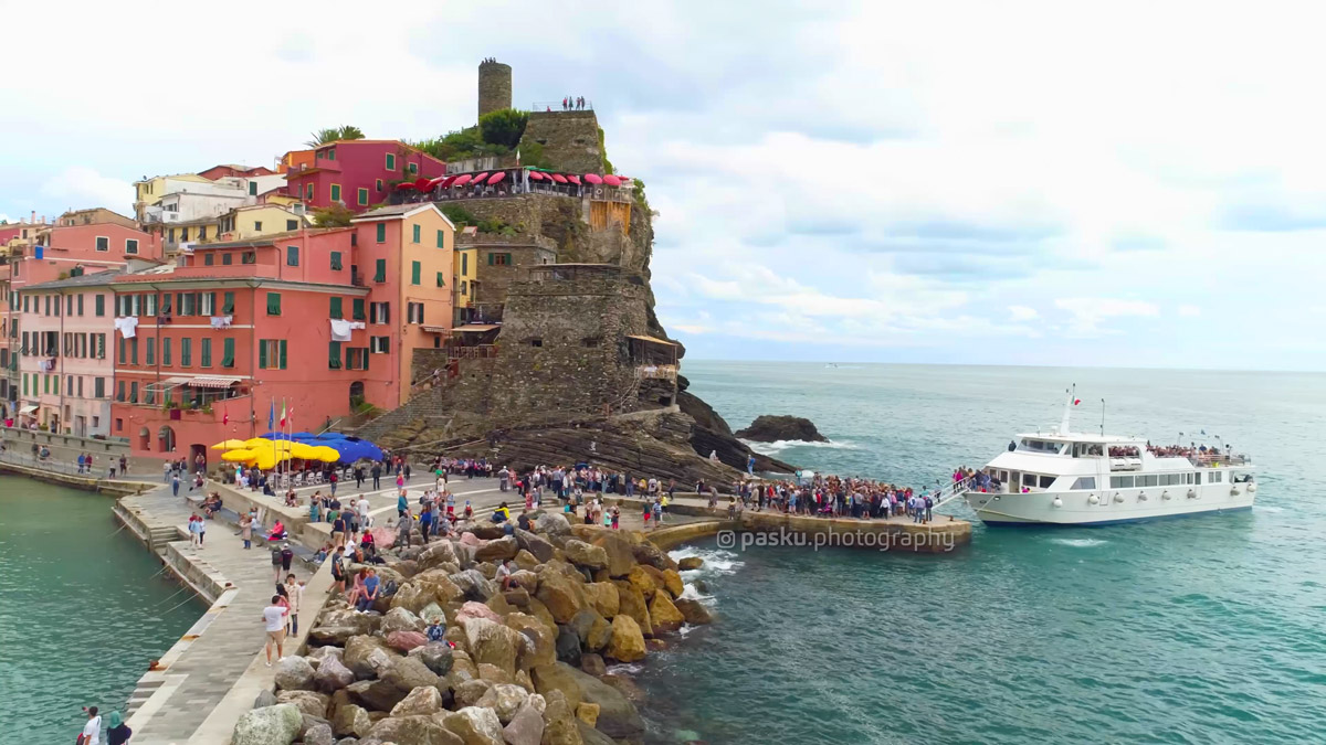 Cuando llegues a Vernazza, no te pierdas su pequeño puerto, rodeado de hermosas casas de colores típicas de Liguria. A diferencia de la playa de Monterosso, la de Vernazza es pequeña, por lo que no es el mejor lugar para tomar el sol en Cinque Terre. Sin embargo, Vernazza ofrece mucho más. Uno de los lugares imperdibles en este pueblo es su Torre del Castillo, que vale la pena subir para disfrutar de las vistas panorámicas.